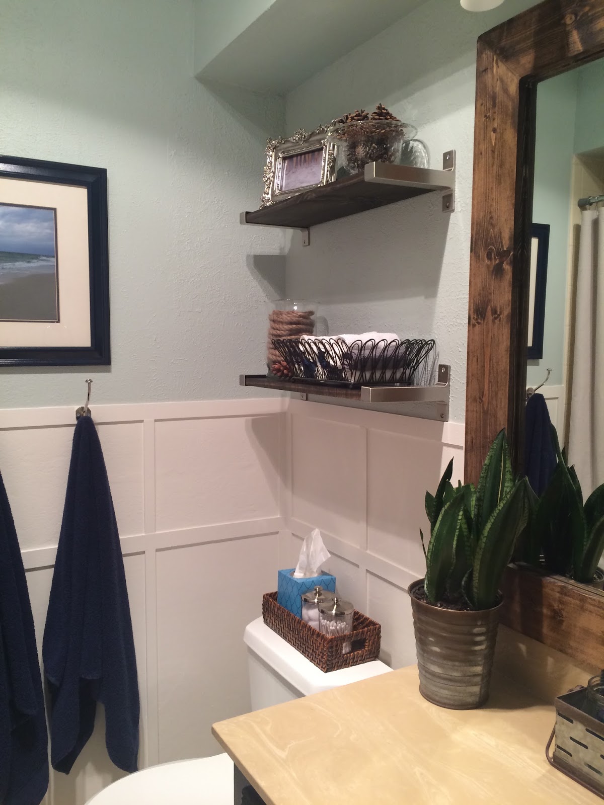 I love it! The wall color and the board and batten sure lightened it up! The mirror is great and of course, the ikea shelving! Go celebrate it's done!