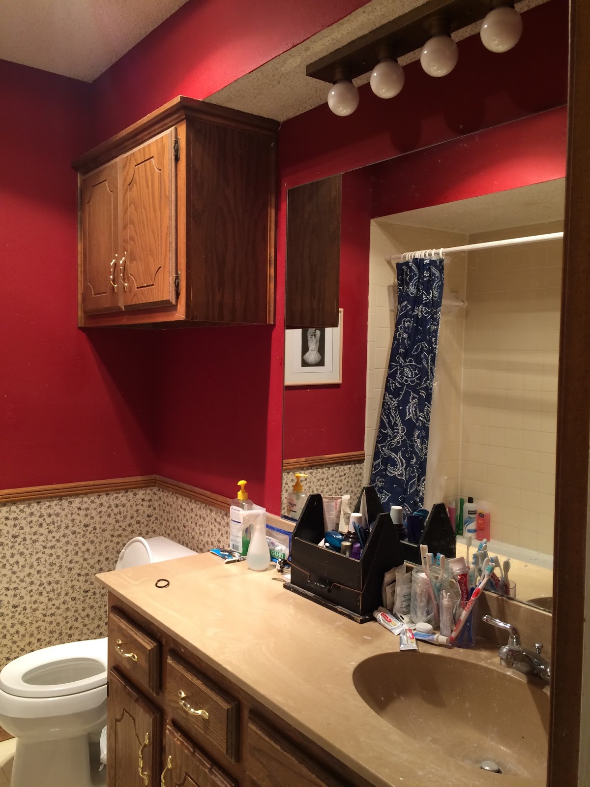 You really transformed this space with such a small amount of money! Love the shower curtain and the mirror trim. Great job girl!
