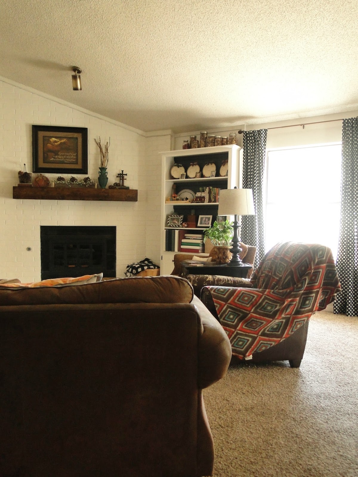 Today is a a two-for-one-special. I finally took the time to photograph our family room, which has been undergoing a makeover since I started painting the brick way back when. (Search “family room” for other posts related to the progress of this room.) I feel like it is finished mostly (for now), so I’m sharing it with you today. And I’m also sharing my minimal fall decorating! 🙂