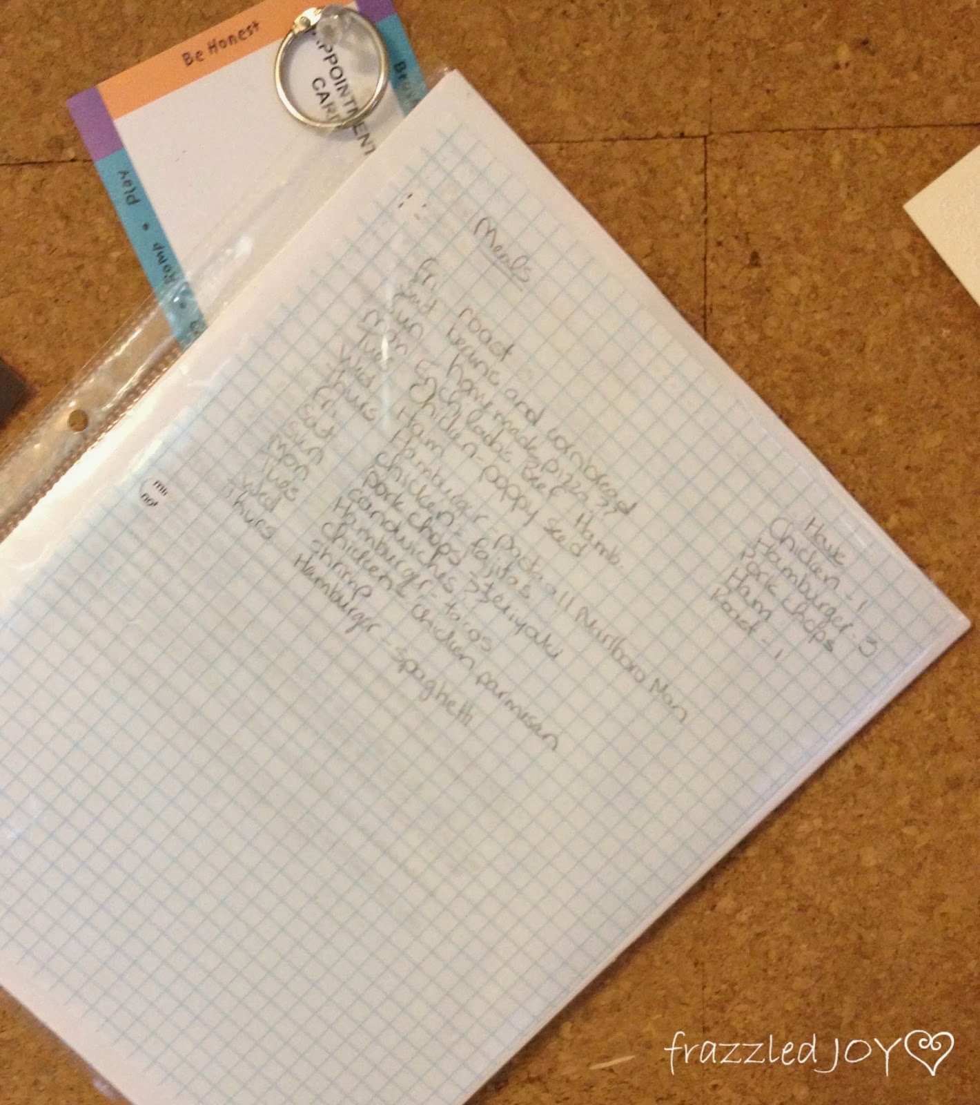 I like your realistic, not-Pinterest-perfect system! Here's how meal planning works for my family. Our system is not photogenic either, but it gets the job done.