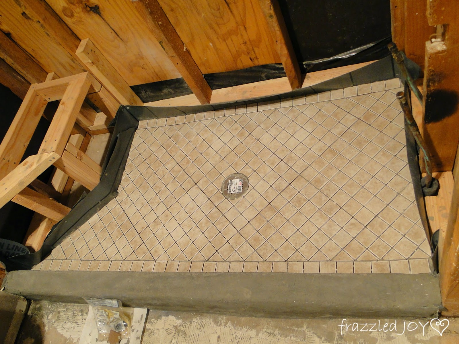 We had a concrete shower floor poured, and had the plumbing moved – drain, controls, and shower head. That was the other thing that was annoying – my hubby had to bend down to wash his hair – and he’s not a tall guy.