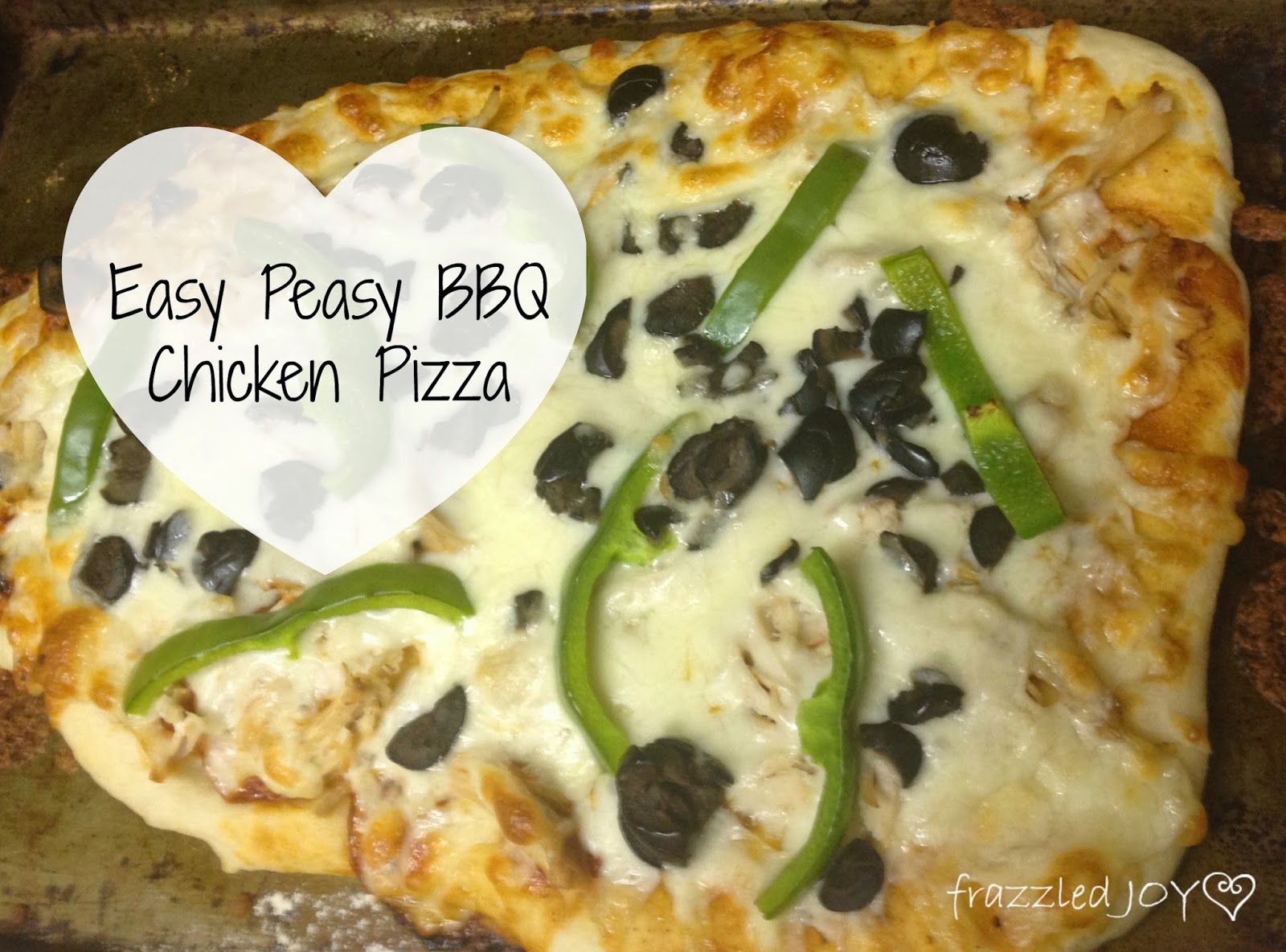 Last night I decided to try a different spin on the pizza by doing BBQ chicken pizza. We had several bottles of BBQ sauce in the fridge with just a drizzle left in them, so I thought this would be a great opportunity to use that up.
