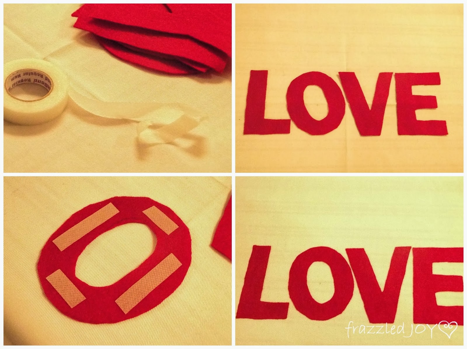 I had some iron on hem tape from a previous project and decided this would be a perfect solution. I simply cut pieces to fit each letter and then, after positioning the letters where I wanted them, ironed them on. (forgive the yellow pictures, there was absolutely no light this weekend due to gloomy gray sleety skies)