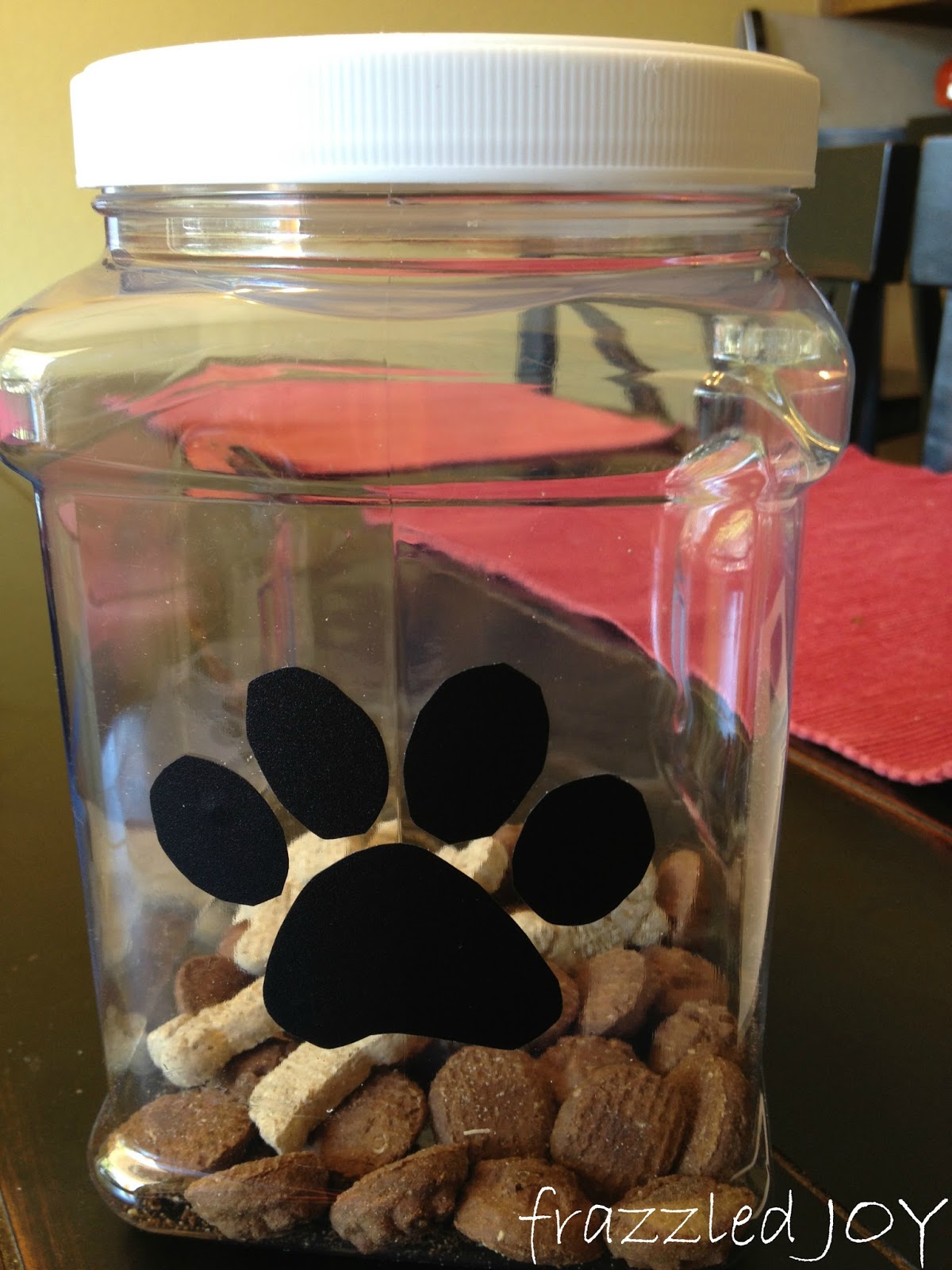 I printed out a paw print from my computer just like I did for the food canister only smaller. (pardon the pink look of the printout, I need printer ink)