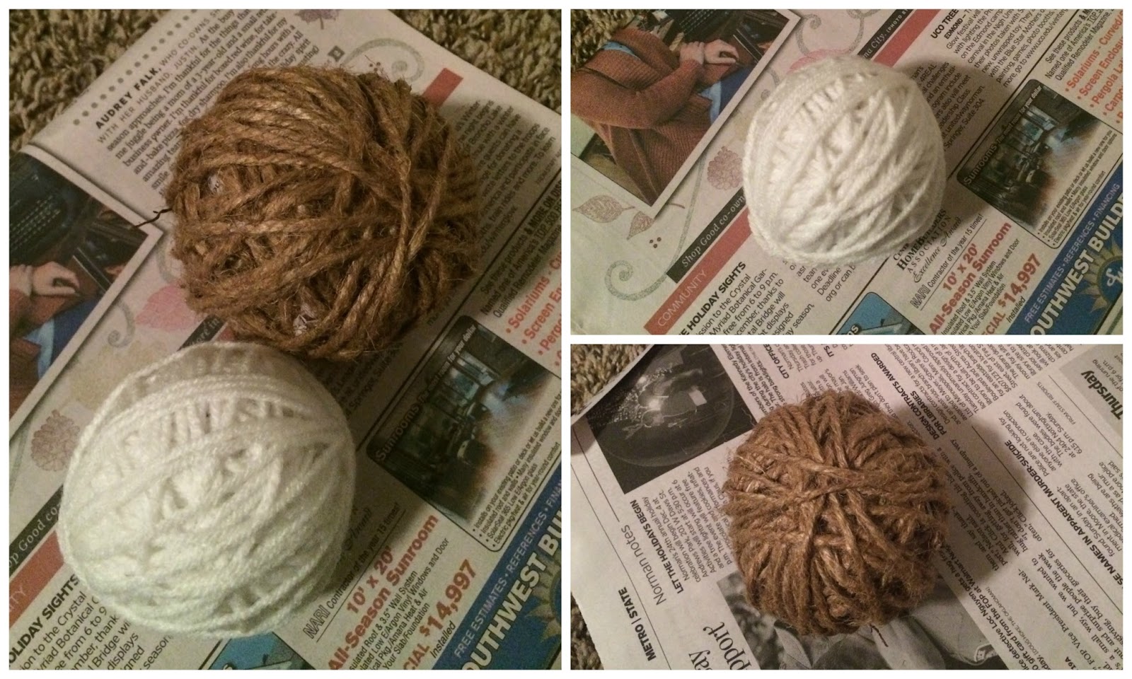 My original plan was to purchase some styrofoam balls to wrap with jute and yarn, but oh my goodness – styrofoam is not cheap, and when cheap is what you are going for…well, you find an alternative.