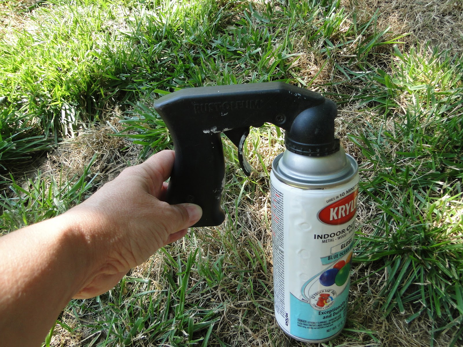 It’s functional but that’s about it. I had seen some cute things in stores and on pinterest and really how hard could it be. So, I got a hankerin to spray paint something and the tin was the victim. I finally found my favorite spray paint tool – won’t spray paint without it – have you seen these – genius. Home depot for around $5 or less – saves your fingers from getting paint all over them, and from getting a cramp!!