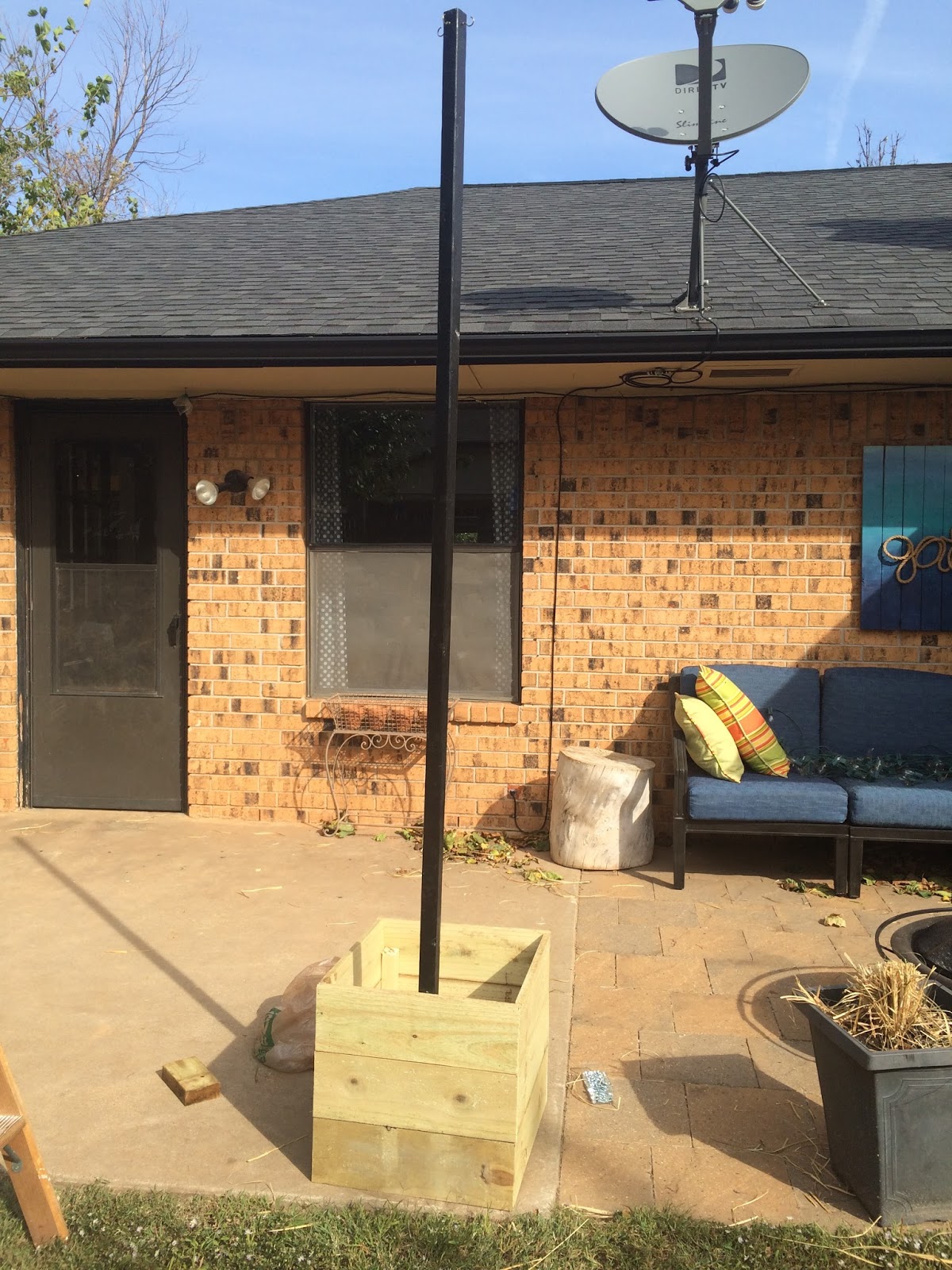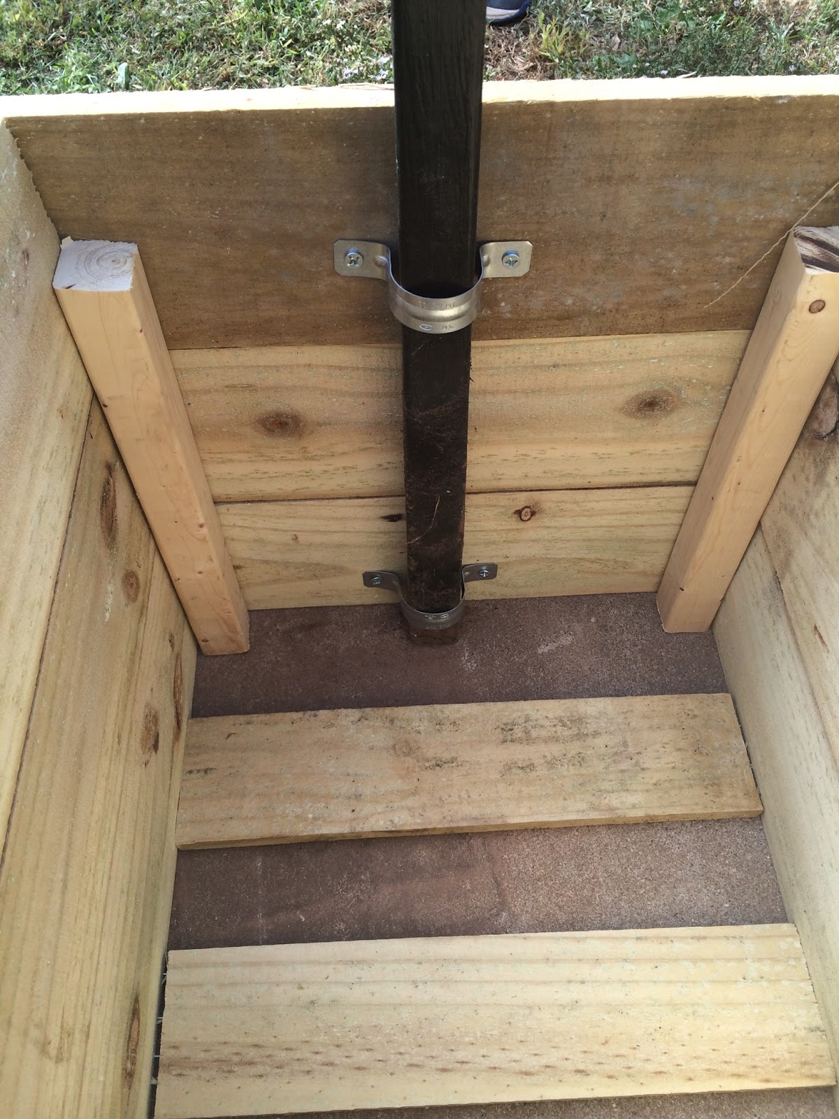 I decided to create some simple planter boxes that would house my existing pots and provide a sturdier way of securing the poles.