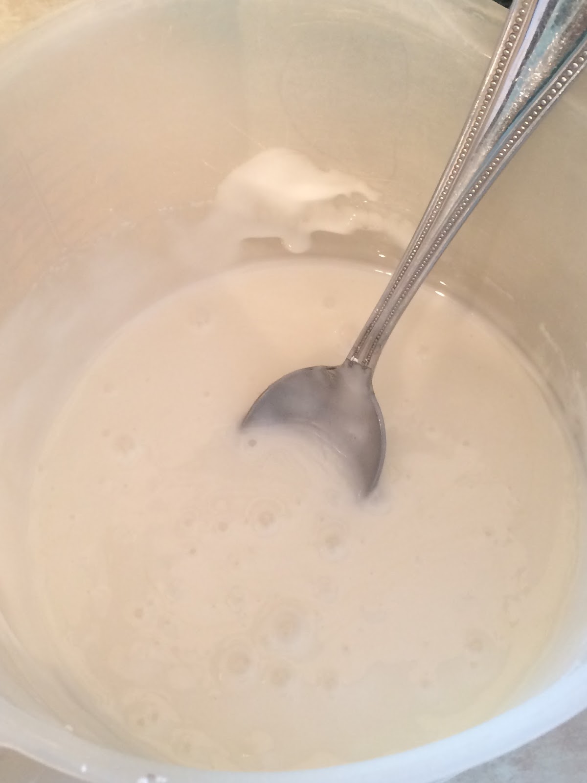 After you take your cake from the oven, prepare the glaze. Mix together 2-3 cups of powdered sugar and 5-6 T of lemon juice.