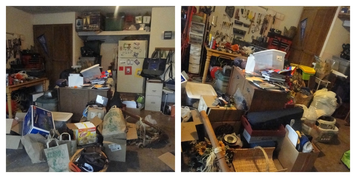 I tried to make it look as big as it really is, but it was impossible to capture the overwhelming mess. If you can see toward the back next to our garage fridge is a large stack of tubs which are full of more junk. Ugh…