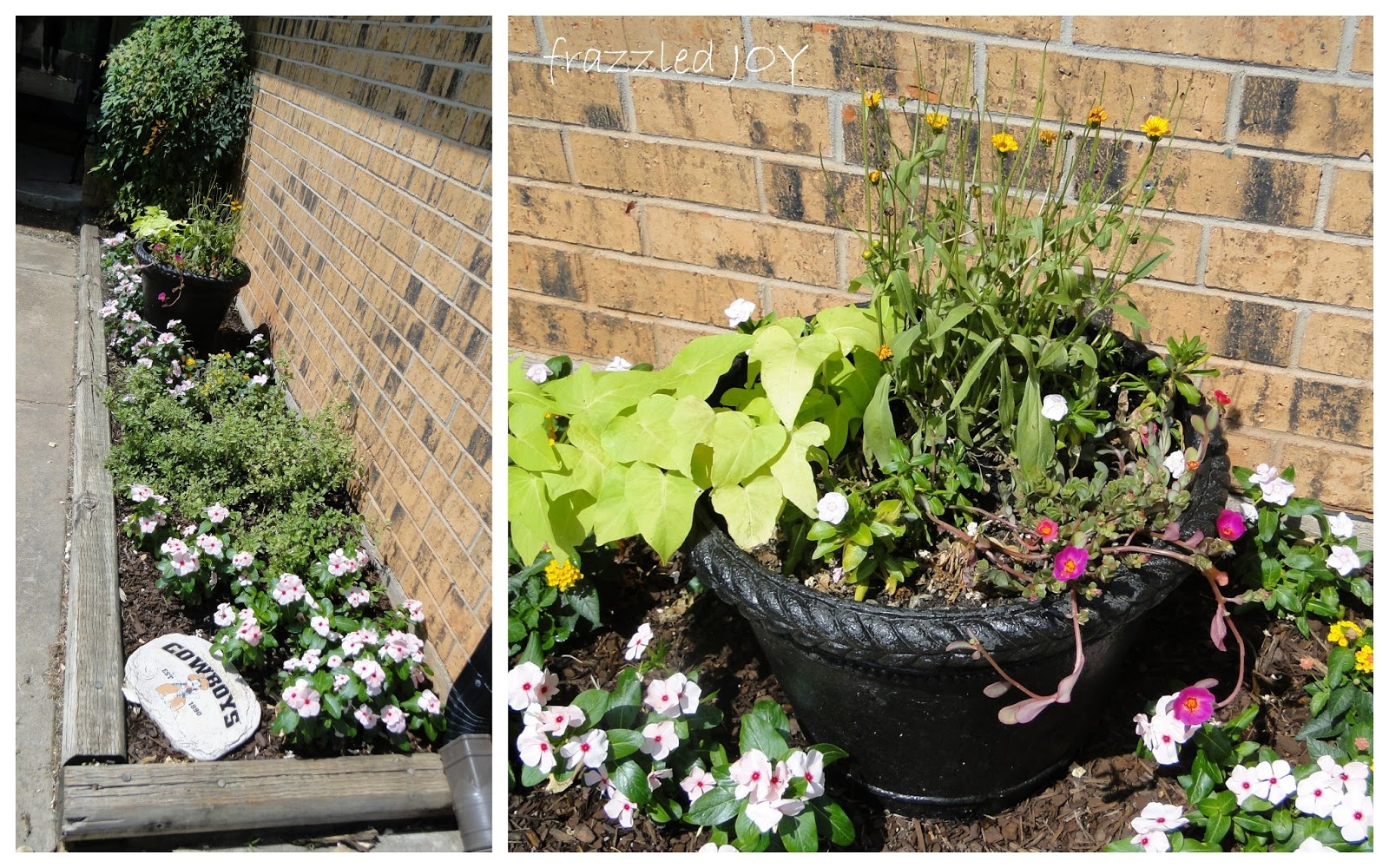 The other thing that happened while I was in New York was not so happy. I was joyfully anticipating the pots on my back porch to be overflowing with beautiful color, just like the one in the front but instead I found this.