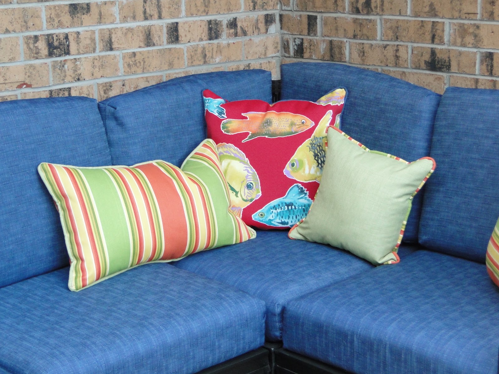 I used the fabric I had to make pillows and added another fun print to the mix to pull it altogether. I love the happy result! And my family loves this new spot!!